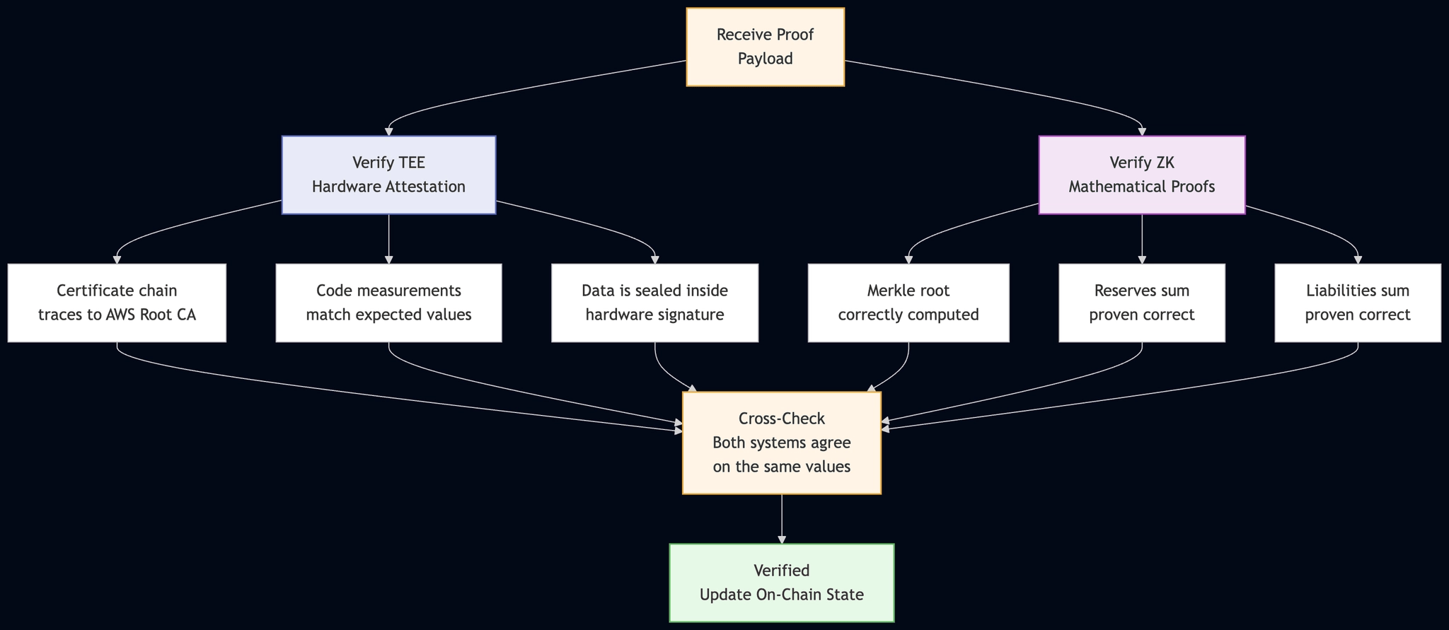 - You verify both the hardware attestation and the ZK proofs independently — they're designed to be checked separately